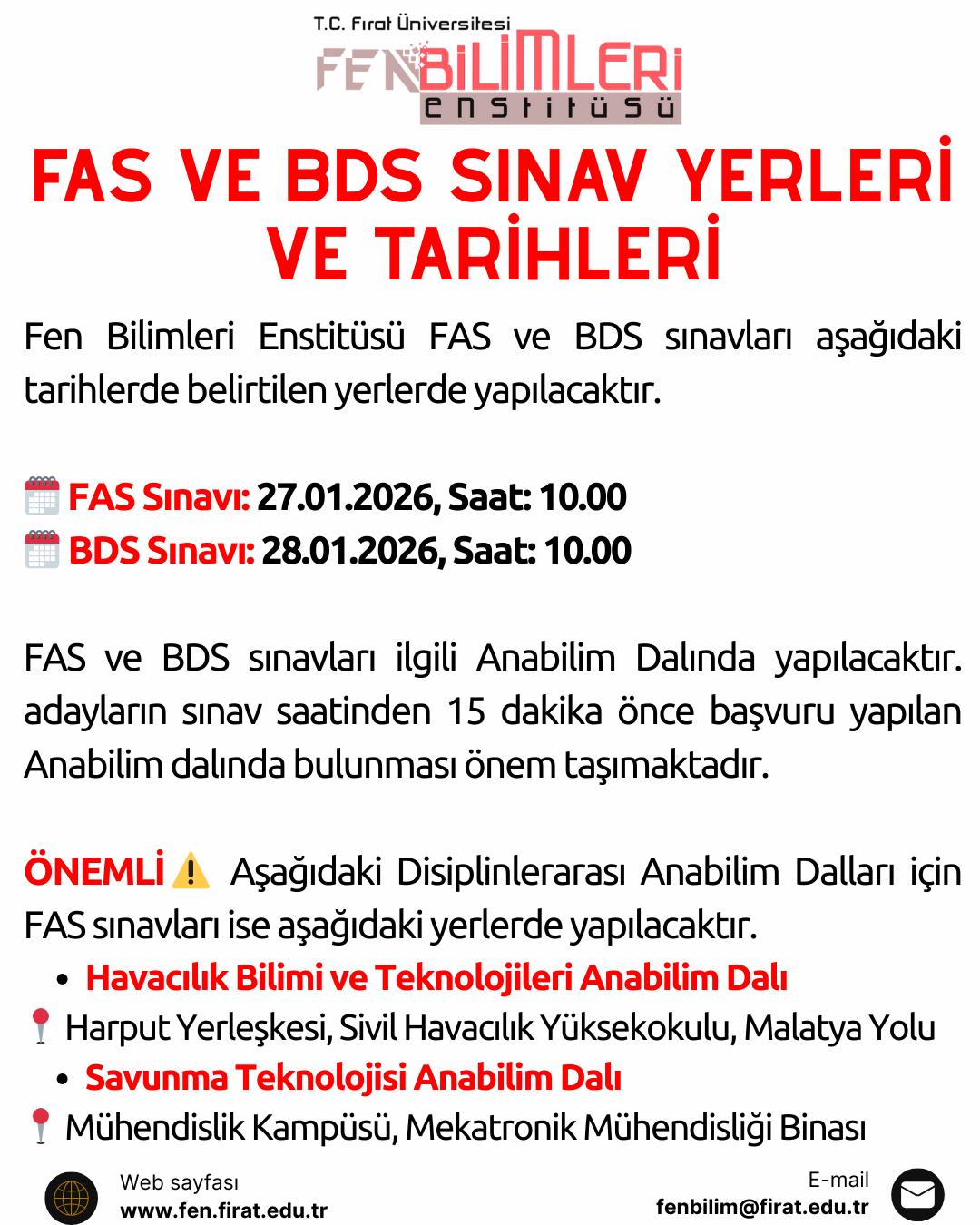 FAS VE BDS SINAV YERLERİ VE TARİHLERİ