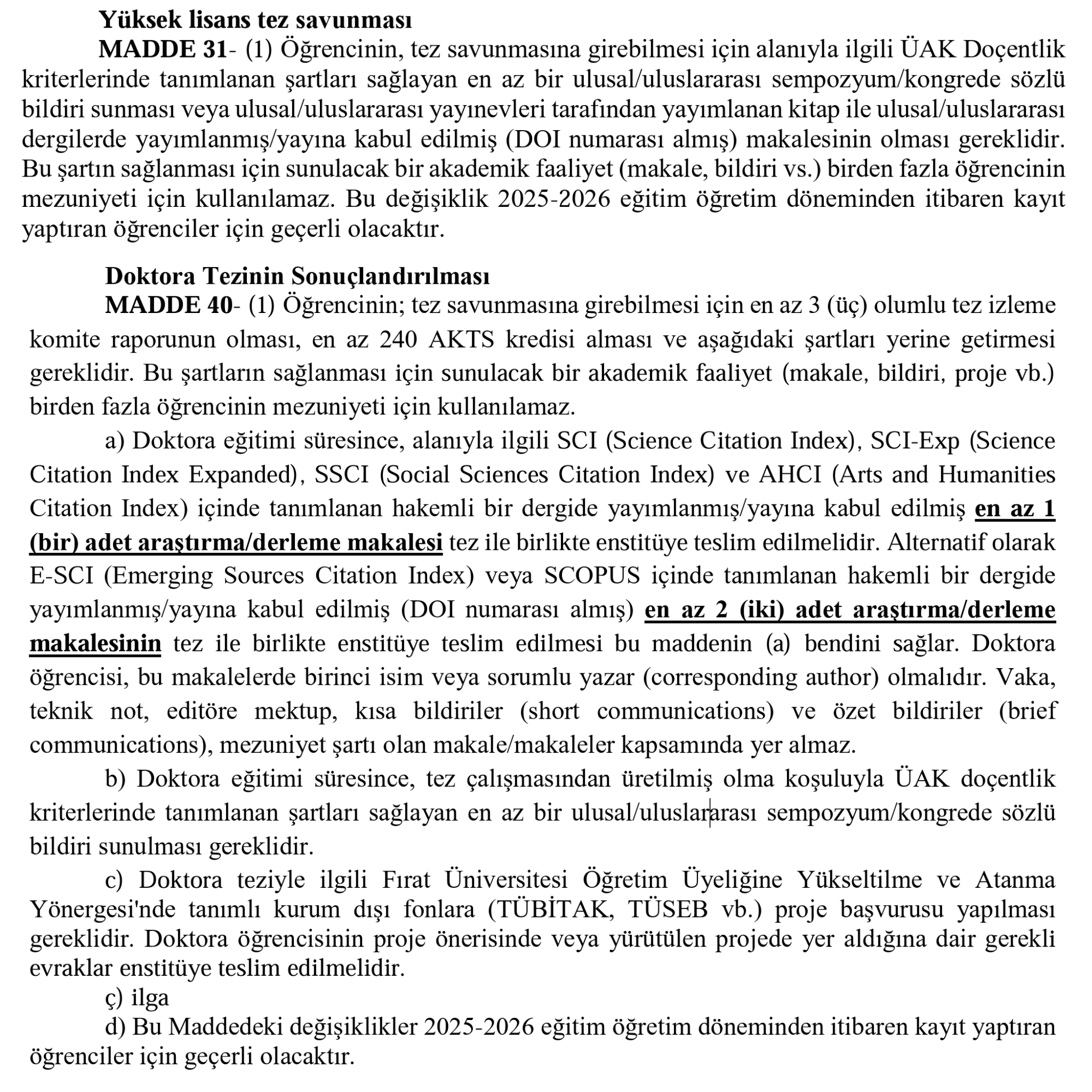 - Bu öğrencilerimiz için yüksek lisans tezinin sonuçlandırılmasında yayın/sempozyum bildirisi şartı aranmamaktadır.
